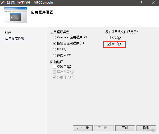 Win32程序使用MFC,这意味着您可以创建MFC应用程序