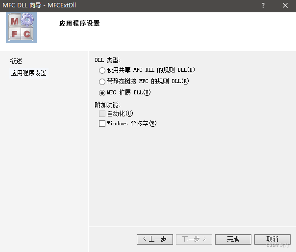 扩展库只能由MFC应用程序调用,并使用动态MFC库