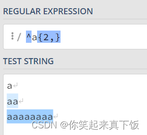 | ^a{2,}$ | 包含两个以上a的字符串 |