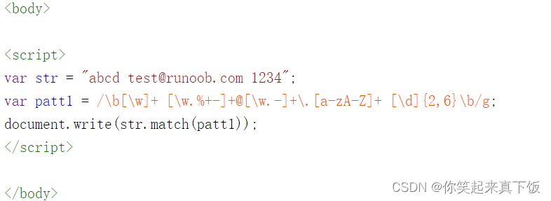 | [^a-z] | 负值字符范围。匹配任何不在指定范围内的任意字符。例如,'[^a-z]' 可以匹配任何不在 'a' 到 'z' 范围内的任意字符。 |