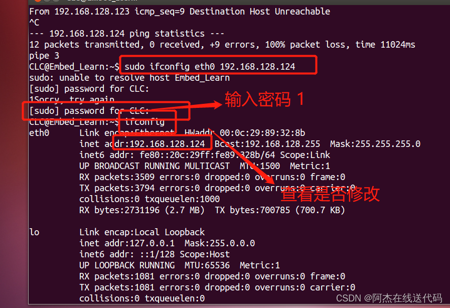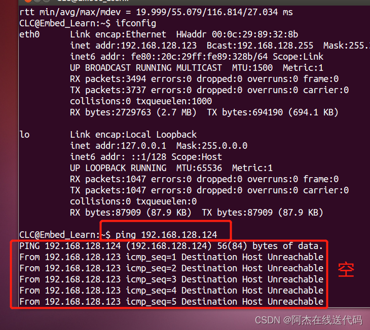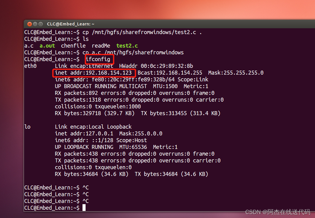 LINUX:ifconfig-- 查看当前网络卡的状态-- IP地址