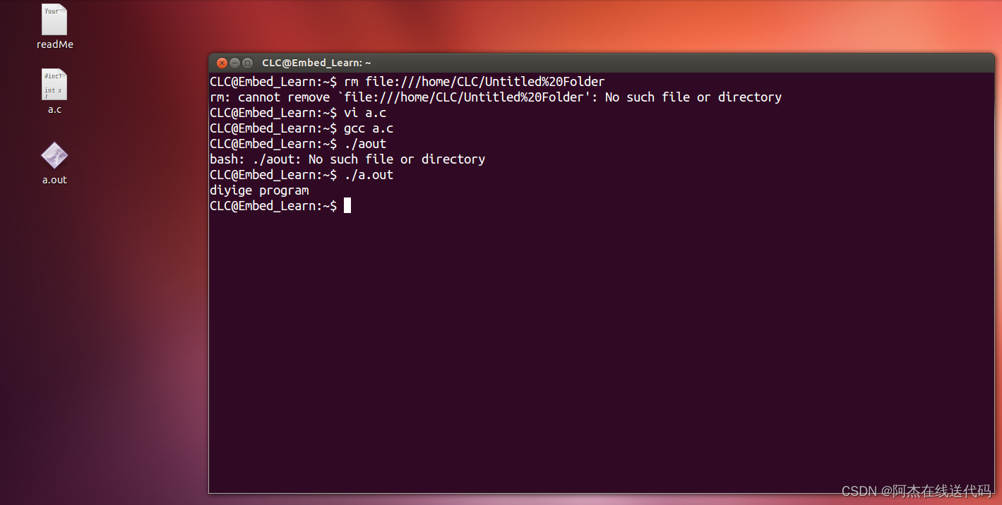 aProgram:生成的文件名(生成的程序名字)-->默认为a.out
