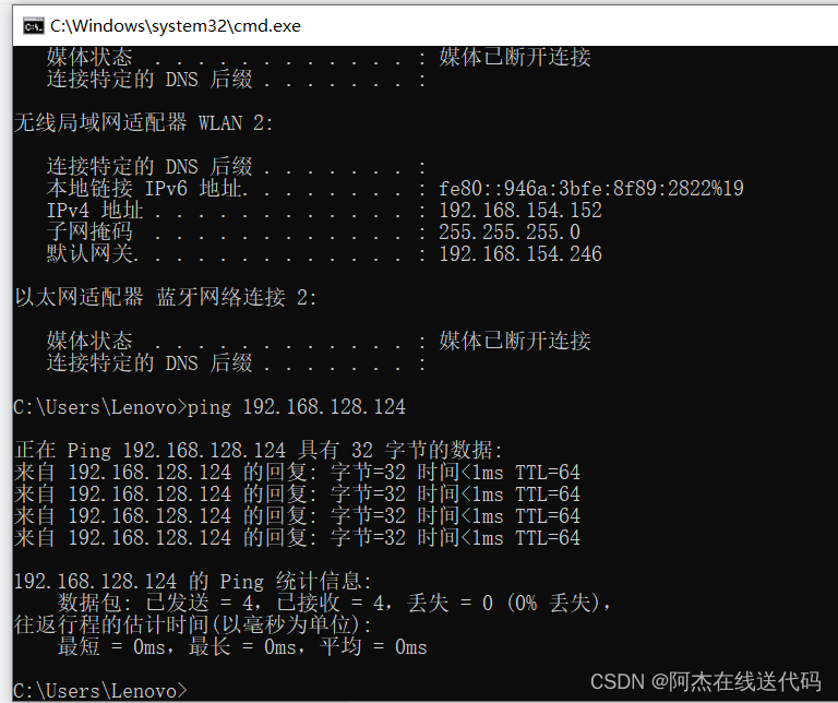 windows:ipconfig-- 查看当前网络卡的状况-- IP地址