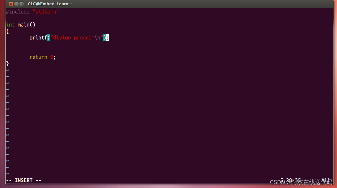 退出VI,保存代码;命令行模式下: :wq w:保存 q:退出
