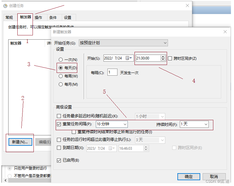 选择触发器,然后创建一个新的触发器,并设置每天的备份时间