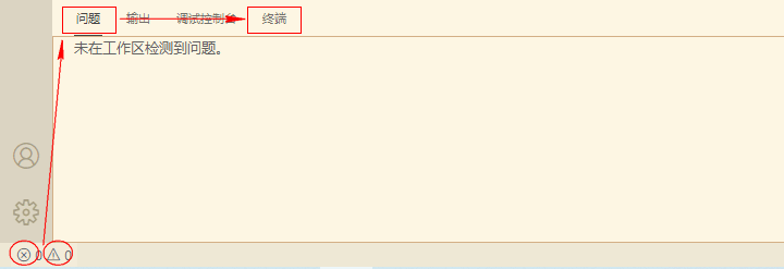 在VScode窗口左下角,你通常会看到一个X或!标记在下面的红色圆圈中,
