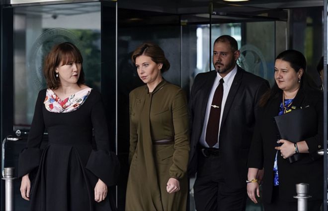 不管是故意还是无意地,当她到达华盛顿时,埃琳娜·格雷伦斯卡娅穿着军服。