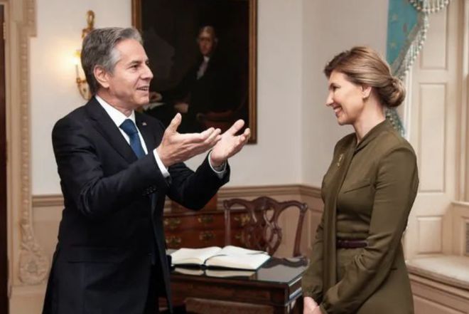 当两位女士第一次见面时,讨论仍然是“美国对乌克兰政府和人民的持续支持”。