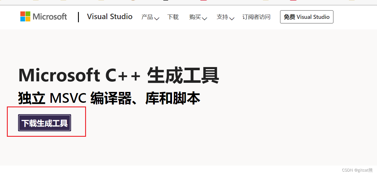 这个错误表明,我们需要安装一个C++编译器,用于Windows平台,如果你的电脑已经安装了C++编译器,不会有这个错误,您可以下文跳过C++编译器安装过程。我们按照错误提示,https://visualstudio.Microsoft.com/visual-cpp-build-tools/下载安装程序,如下图。注意这里可能有问题,单击“下载生成工具”,点击 https://aka.ms/vs/17/release/vs_BuildTools 此链接,但是这个链接可能暗示aaka.ms拒绝连接(可能不会被提示,和网络有关)。如果你遇到这个问题,更换上面的链接为 https://ww.aka.ms/vs/17/release/vs_BuildTools,也就是说,添加一个ww.,就可以下载了。