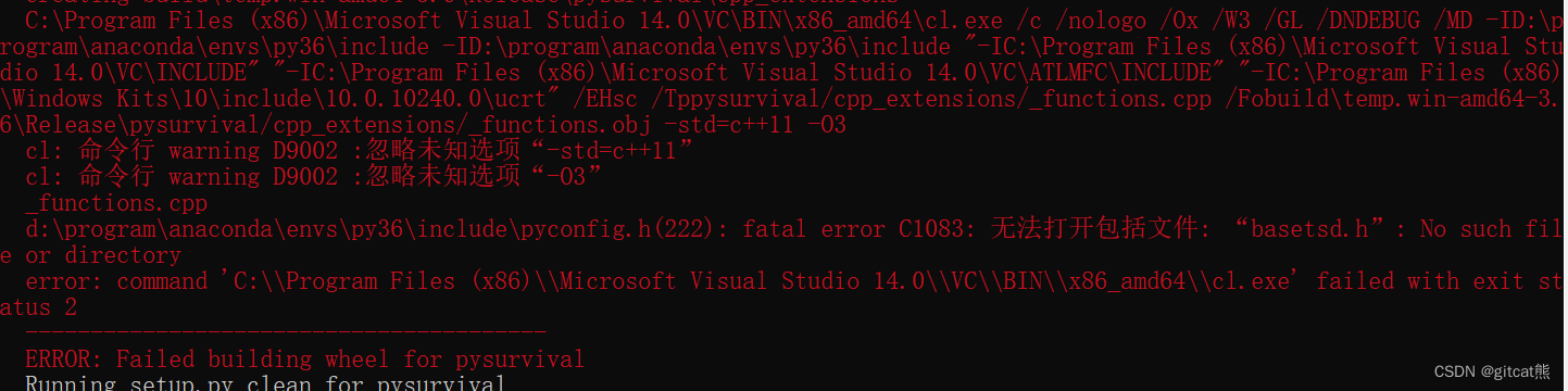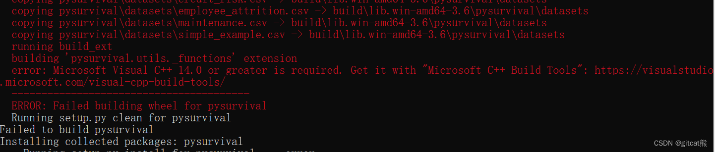 windows中直接通过pip install pysurvival安装pysurvival会报如下错误: