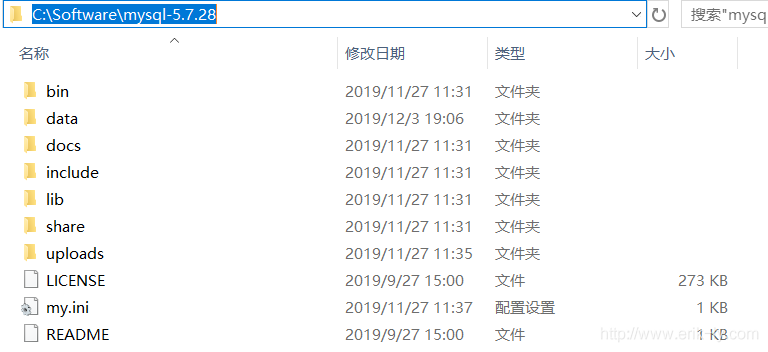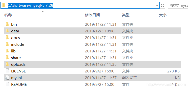 在C:Softwaremysql-5.7.28目录中创建my.ini包含一个目录文件的文件,跟踪其本身的修改状态。