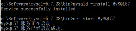 切换到bin目录中,执行mysqld –install MySQL57安装,然后再执行net start MySQL57启动 MySQL