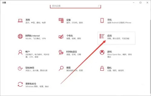 在打开Windows设置面板中,单击“应用”选项。