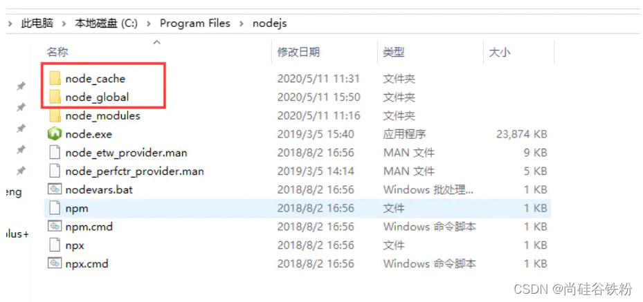我们还可以将包路径放在nodejs安装路径下,并创建两个文件夹在安装路径下