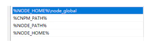 系统变量路径中新的%NODE_PATH%,%NODE_HOME%,%NODE_HOME% ode_global,%CNPM_PATH%