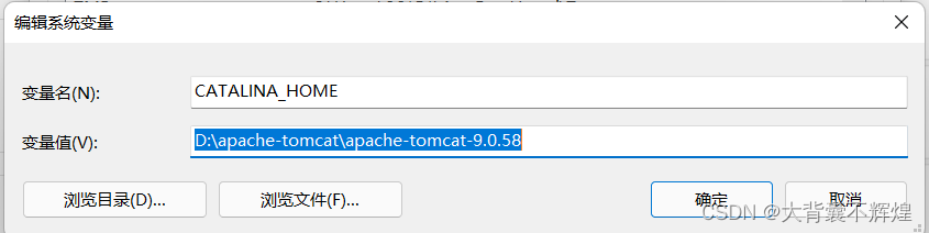变量值:D:apache-tomcat-8.5。 你刚刚解封的文件夹的路径可能与我的相同。