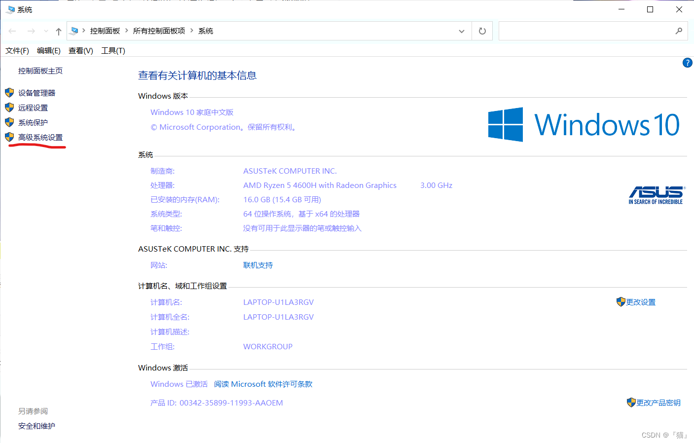 win10&win11:右键此电脑——属性——高级系统设置——高级——环境变量