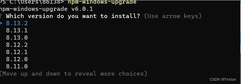 参考另一篇文章的命令,npm install -g npm-windows-upgrade