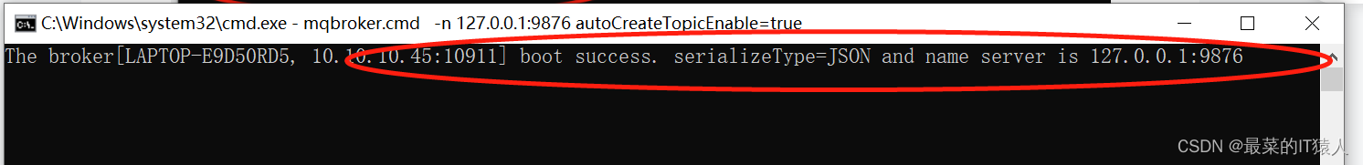 start mqbroker.cmd -n 127.0.0.1:9876 autoCreateTopicEnable=true