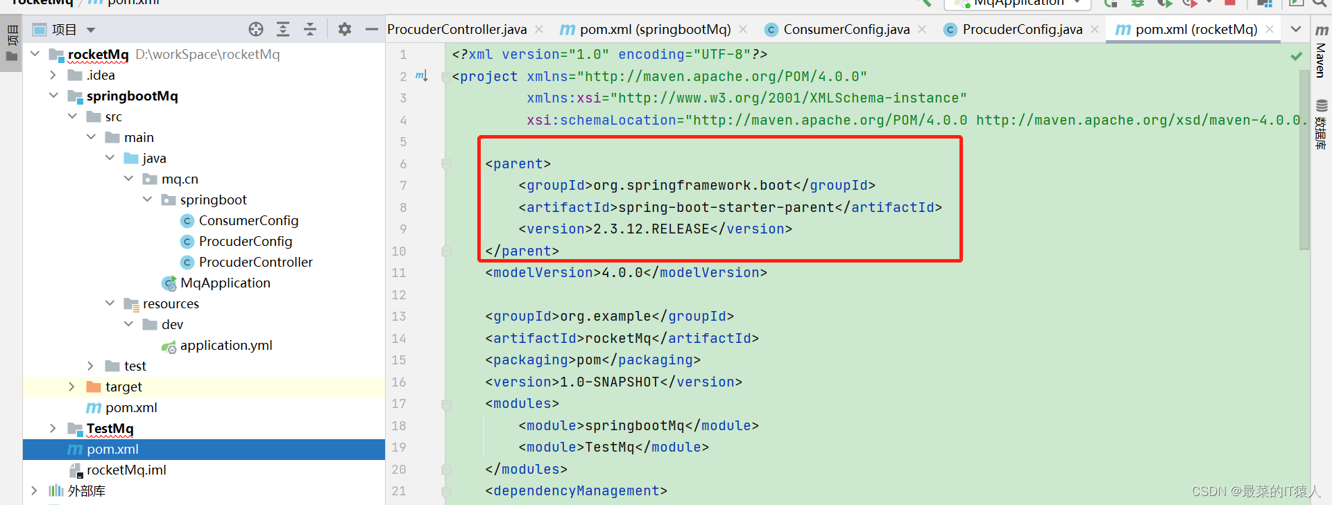 然后我们创建包,然后创建类,在此我们首先创建一个制造商的听类 procuderConfig,如图所示