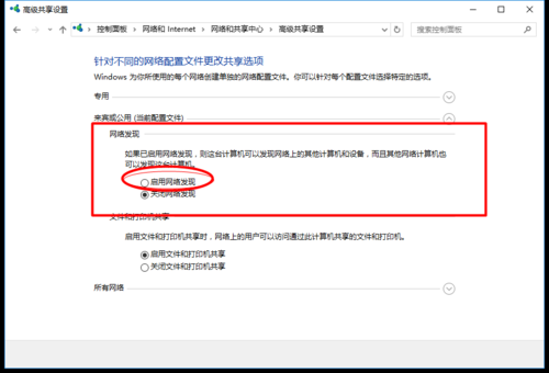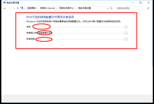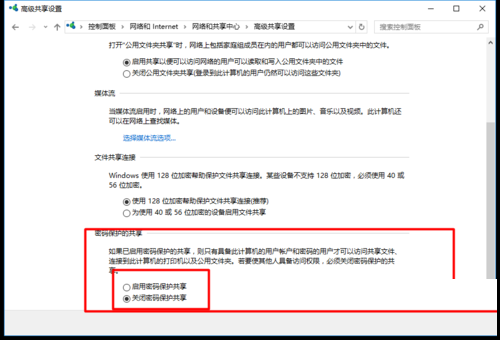 然后我们让网络能够定位(注意括号中的当前配置文件,哪个列在括号中打开),然后打开所有网络,然后拖到最下面,我们可以看到密码保护共享(如果关闭了),关闭它(我将在此声明)并保存修改;