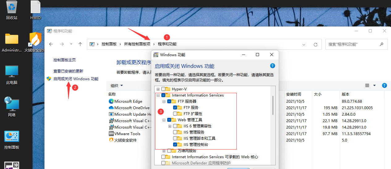 软件 -- -- 控制面板 -- -- 启用或禁用窗口功能
