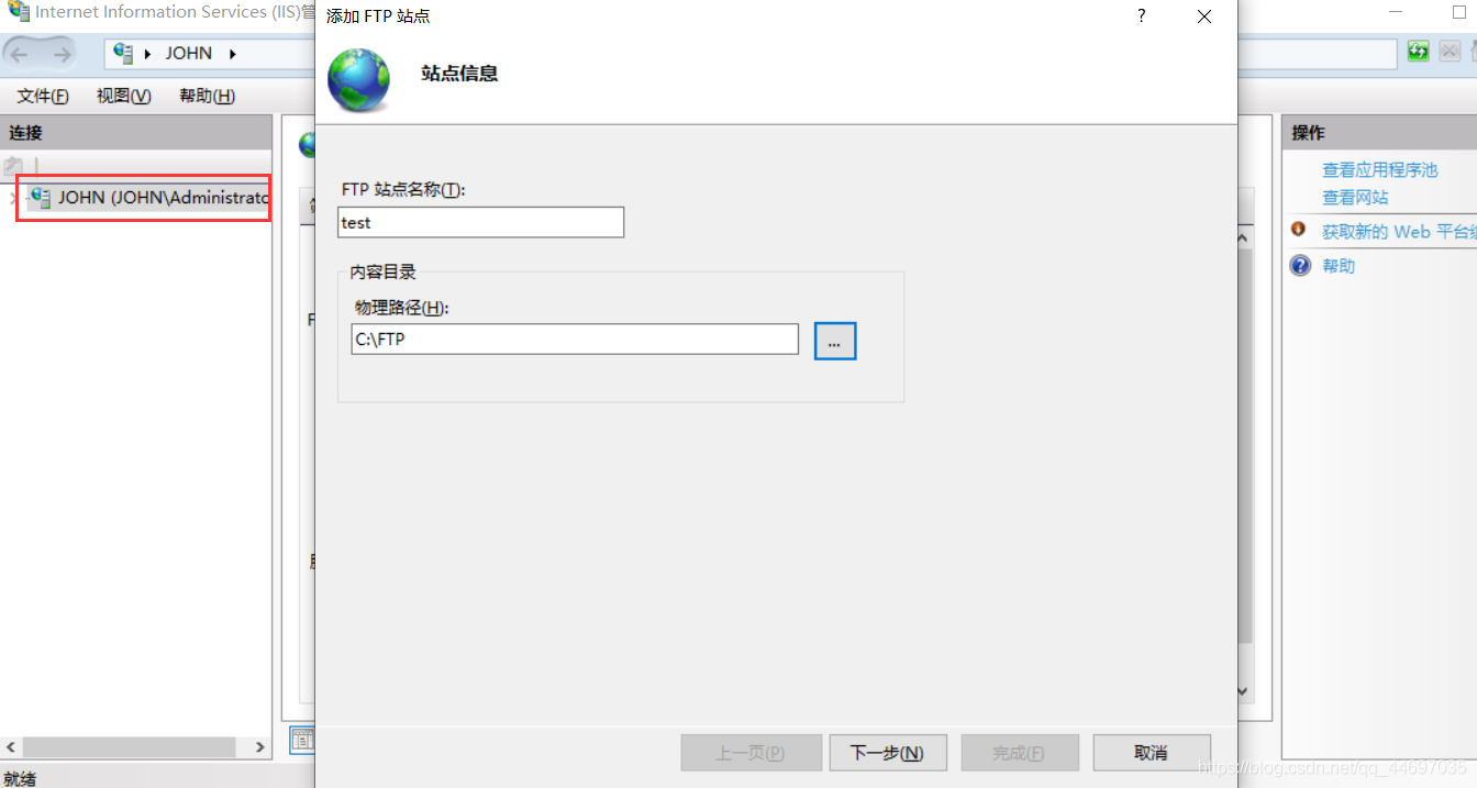 自定义网站名, 路径选择已建文件夹, 下一个