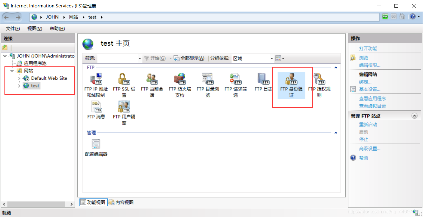 如下图所示,在鼠标右键红色框中添加 FTP 站点。