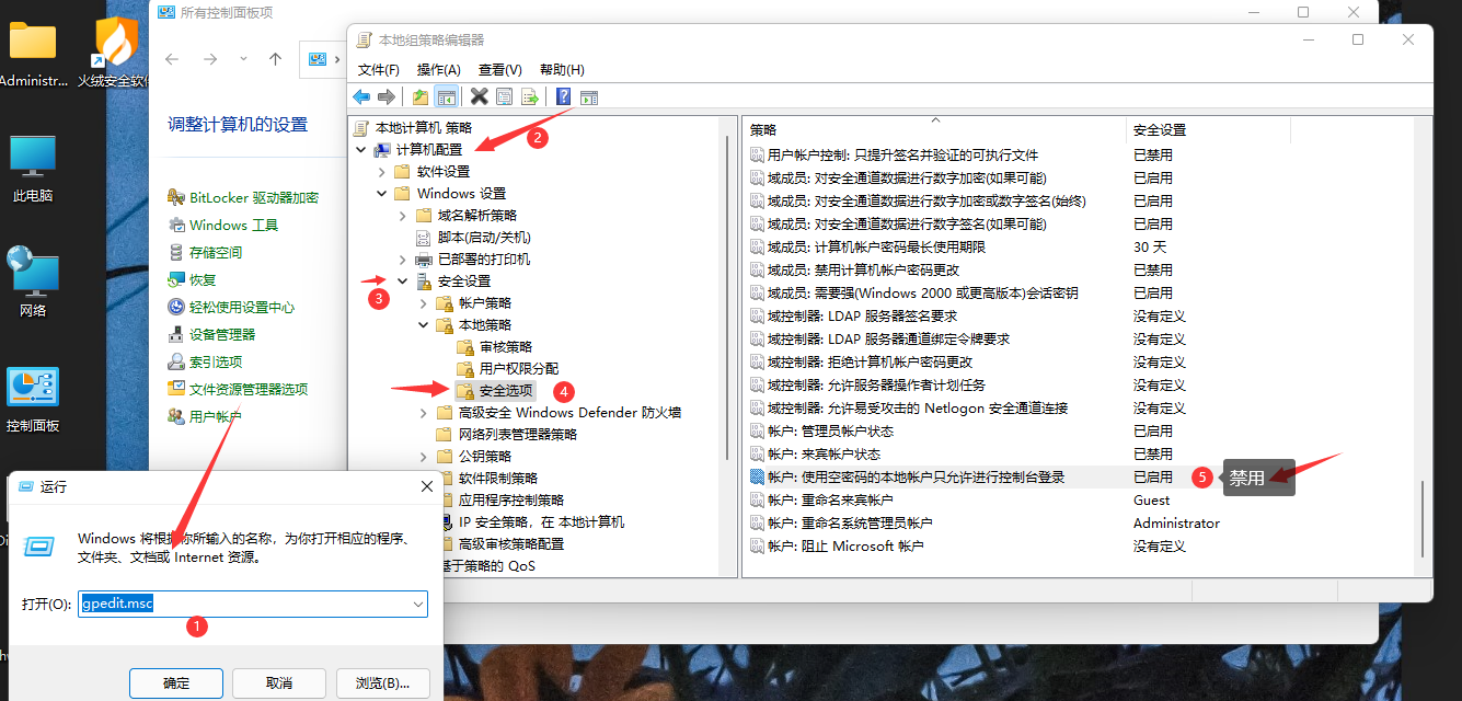 通过更改 FTP 服务器的组策略, 启用管理员账户以空密码登录 :