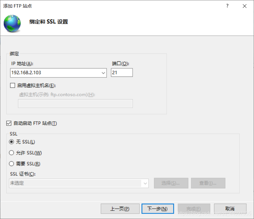 IP 自行选择, 而 SSL 证书则不选择 。