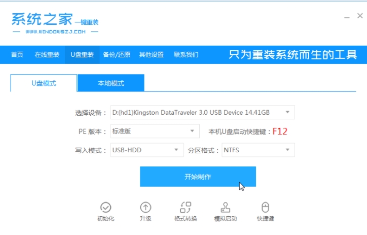 第一,将8克或更大的磁盘插入一个像样的计算机,下载系统安装主键,并重新装入系统工具,以提取磁盘模式打开并开始制作。