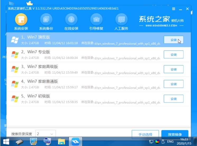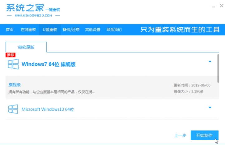 2 选择 Windows 7 系统并按键开始磁盘制造过程 。