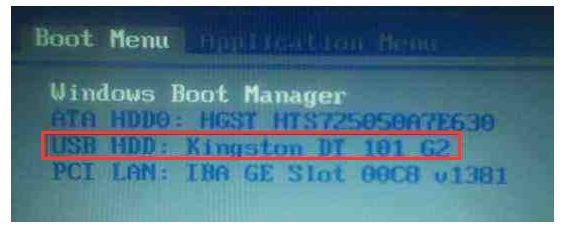4. 在必须固定的计算机中插入闪存驱动器,按下开启该驱动器的电源键,快速按下热键,将启动器弹射到接口,选择USB选项,并退出车辆。