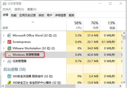 2 转到 processes 标签, 定位资源管理器, 然后单击“ 重新启动 ” 。