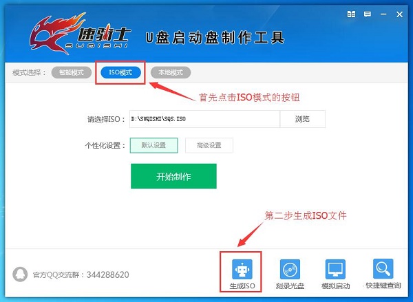 1. 启动速度骑士程序,选择ISO模式,然后制作ISO文件。