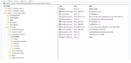 2.开启文件夹HKEY_LOCAL_MACHINESYSTEMCurrentControlSetControl,看右边是不是有“StorageDevicePolicies”。