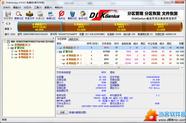 除此之外我们还可以利用分区工具DiskGenius进行判断,这个工具当进入U启动的时候就可以看到。