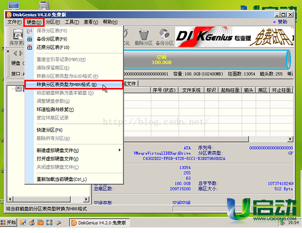 点击硬盘,如果转换分区表类型为MBR是可以选中的,那么说明你的为GUID的,反之,则为MBR的。