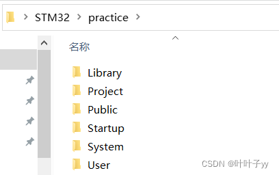 2. 在公共文件夹中增加两个额外的目录: inc 和 src(照顾与面部的区别),这两个目录分别用于存储.h和.c文档。
