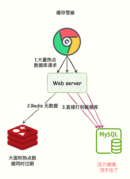 Cache avalanche提到许多请求无法在Redis缓存系统中处理,导致数据库负荷增加,甚至坠机。