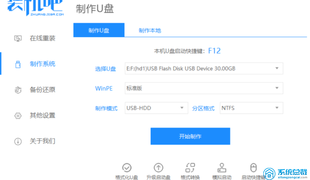 1.首先,下载安装系统到电脑上,按键重新安装系统软件并打开,插入8GB或以上U磁盘,并在生产系统中点头启动生产。