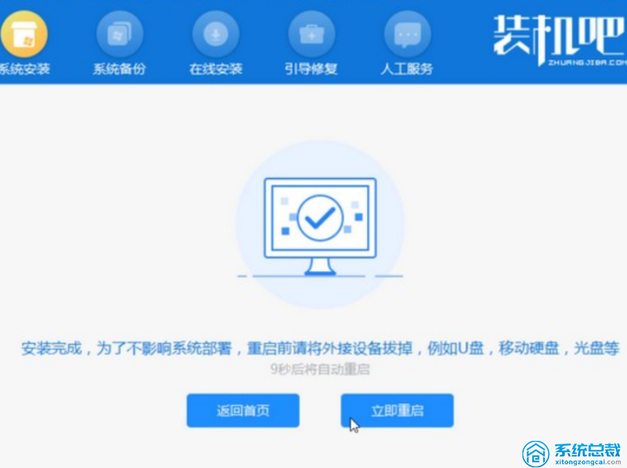 在PE系统中,打开系统总裁安装工具,选择在c盘上安装的窗口系统,然后耐心等待安装重新启动。