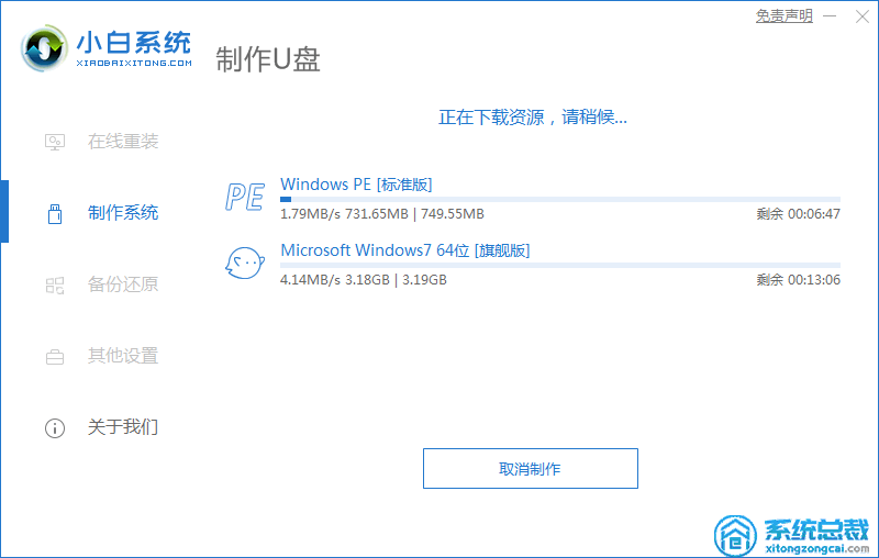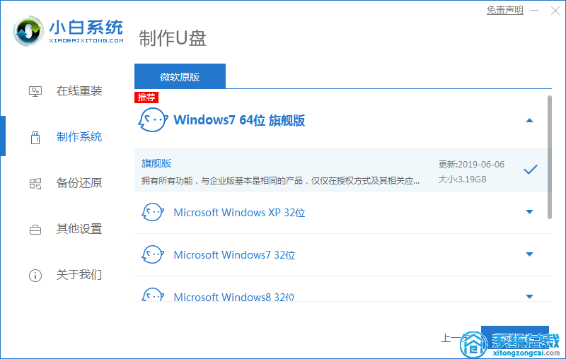 1,下载安装系统主席一个按钮重新安装系统,选择做U盘,单击开始做。