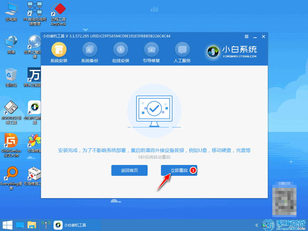 5.提醒您在U磁盘创建后重新启动您的电脑。