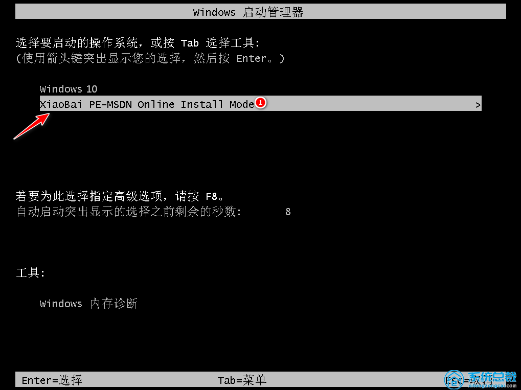 重新启动后进入启动管理器页,选择第二个重新启动键