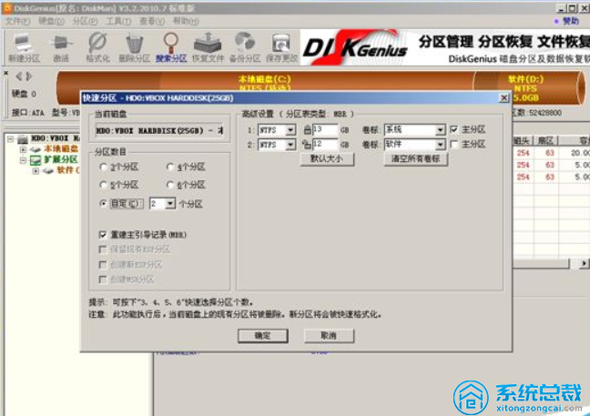 5.设置系统分区的数目和大小,以确定系统分区的操作;