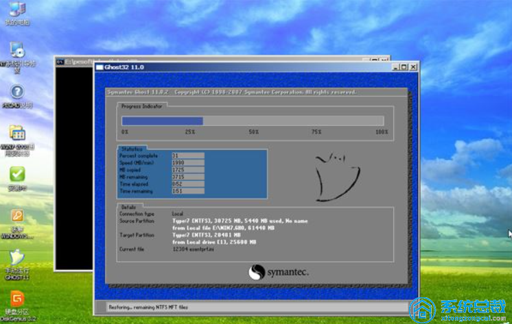 完成后,计算机将自动重新启动,卸下系统磁盘,再启动后,实现重新安装系统及其系统全过程;