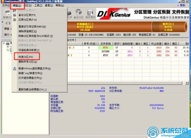 3、双击鼠标桌面【系统分区工具DiskGenius】,点击【电脑硬盘】—【快速分区】;