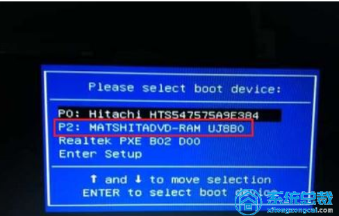 1、在电脑光驱上放进系统盘,重启后不断按F12、F11、Esc等启动快捷键,选择DVD选项,按住回车,不兼容快捷键的老旧型号参照第二点进到BIOS设置光驱为第一启动项;